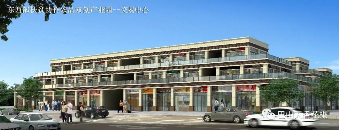 项目整体概况: 该项目位于平昌县金宝新区何家坪,是东西部扶贫协作农品项目中最具代表性的项目之一。项目集青花椒加工、农产品交易等为一体,将打造川东北最大最成体系的农产品交易中心,总投资约2.2亿元,占地规模约200亩。项目建成投产后,预计年交易加工鲜花椒50000吨以上,实现年销售收入约5亿元以上,利税约2520万元以上,带动约10万人就业。 交易中心商铺详情: 本次招租的商铺位于图1“交易中心鸟瞰图”所示的交易中心1号楼、交易中心2号楼和交易中心3号楼。每号楼共有三层,1楼的商铺开间4.5米,进深12米,1楼高6米,2楼高4.2米,3楼高4.2米。每号楼商铺有2排,每排16间,共计32间,商铺门面统一朝外,如图1,2所示。 图1 交易中心商铺鸟瞰图 图2 交易中心商铺效果图